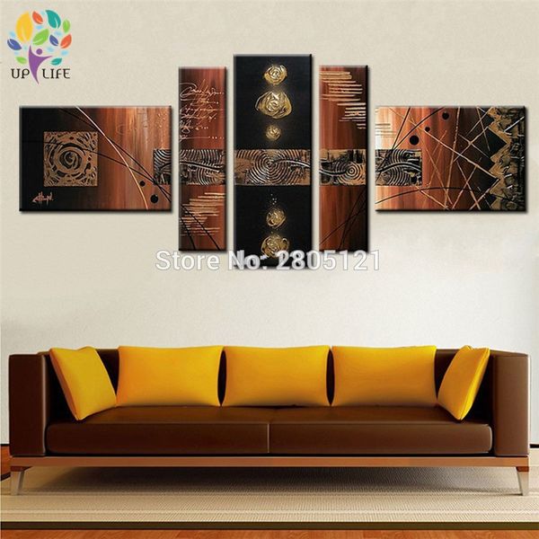 Acheter Peint A La Main Peinture A L Huile Abstraite Moderne Sur Toile Noire Marron Toile Mur D Art Grand Tableau Modulaire Pour La Decoration De
